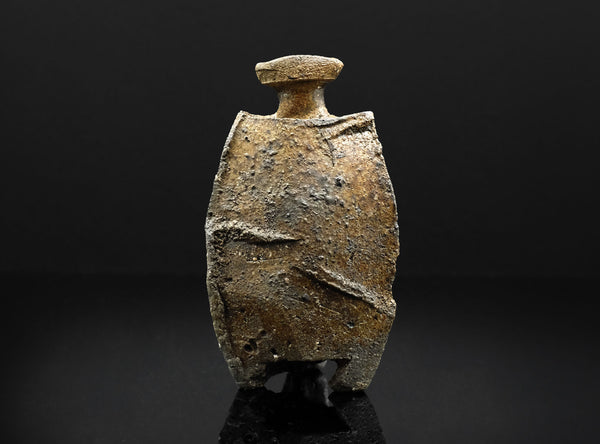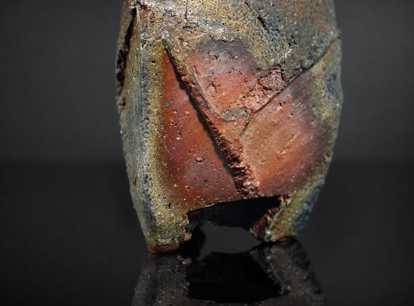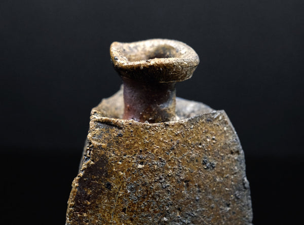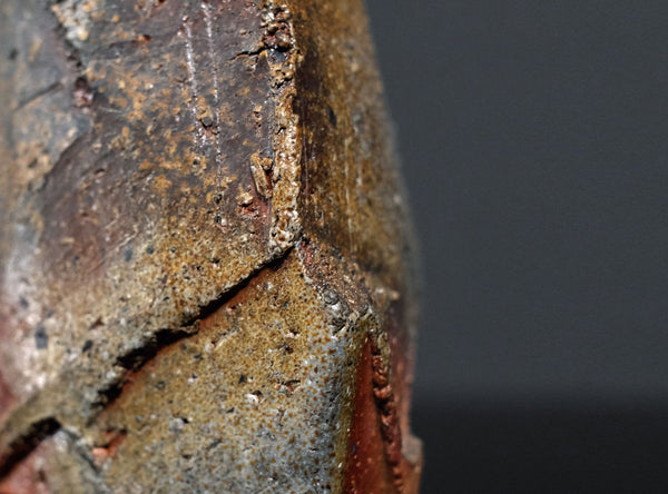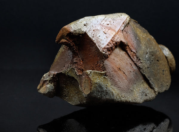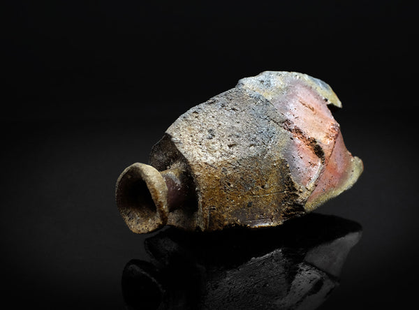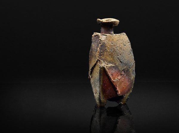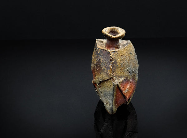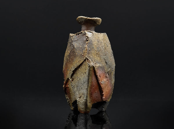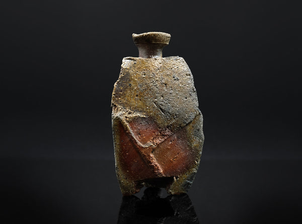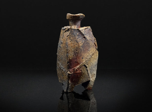 An extraordinary sculptural Bizen tokkuri by Kakurezaki Ryuichi. This piece exemplifies Kakurezaki’s groundbreaking approach to Bizen ware—where dynamic asymmetry, angular geometry, and kiln-born spontaneity converge into an object that transcends conventional function.