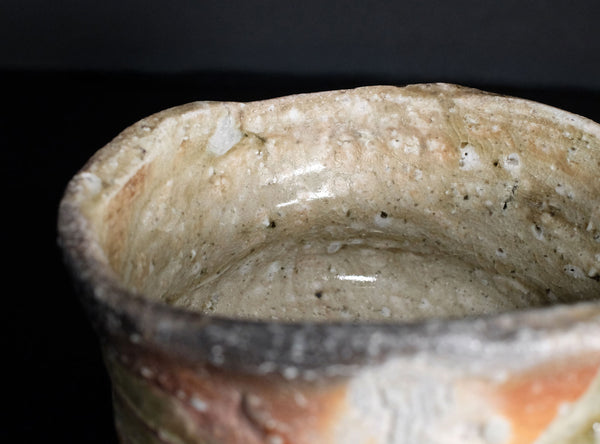 A bold and expressive Iga ware chawan by Kanji Atarashi, exemplifying the deep tradition and raw vitality associated with tea ceramics rooted in the wabi-sabi aesthetic. Atarashi’s work reflects a masterful command of form and fire, shaped by decades of dedication to Japan’s medieval kiln traditions.